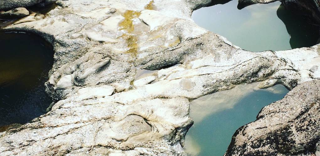 Danach gehen wir im Prinzip über die Wiesen und landen somit am oberen Teil der Eibele-Wasserfälle. Über eine kleine Brücke unterhalb kann man noch Österreich treten und auf die Kiesbank vor den Wasserfällen gehen, um ein schönes Foto zu machen. Wir gehen durch die Feriensiedlung zurück zu den Krebsbach-Wasserfällen, gehen dann aber nicht über die Brücke sondern links den Weg entlang. Nach einiger Zeit geht es steil links hoch zur Blockhütte und Schaubrennerei "Hölle". Wir entscheiden uns für den Weg der dann wieder links weiter geht die "Schaubrennerei" und setzen uns dort gemütlich in die Sonne. Die fabelnhafte Aussicht, die nette Bedienung und der Sonnenschein machen uns sehr zurfrieden.