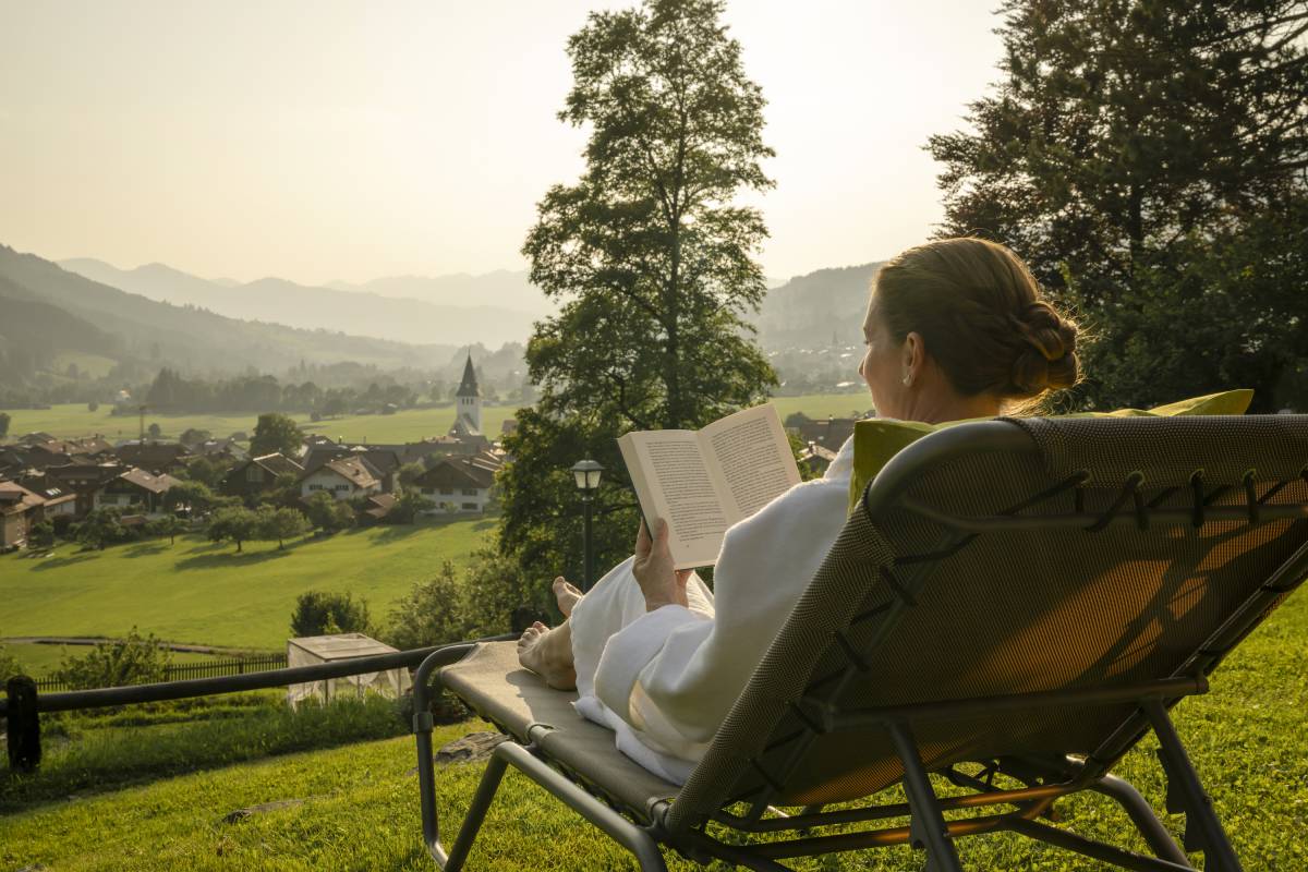 Erleben Sie Natur pur auf königliche Art: Unser Naturhotel in Bayern liegt eingebettet in der unberührten Landschaft des Allgäus – mit weitem Blick über Wiesen, Berge und das malerische Bad Hindelang. Genießen Sie Ihren Rückzugsort auf 860 Metern Höhe mit frischer Bergluft und traumhaften Panorama. Schauen Sie den Insekten zu, wie Sie von einer Wildpflanze zur nächsten fliegen. Wachsen Sie auf vom zwitschern der Vögel oder dem gurgeln des Baches. Gehen Sie auf den Balkon, atmenen Sie die frische, saubere Luft und beginnen Sie den Tag mit einem langem Atemzug mit Blick auf die Berge und Natur.